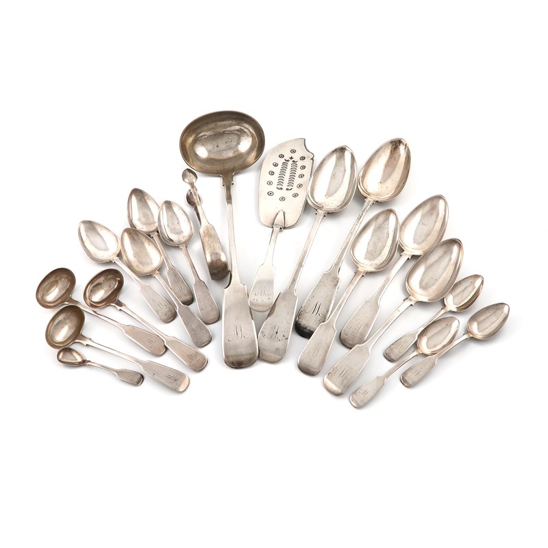 An early 19th century Scottish provincial silver Fiddle pattern part canteen