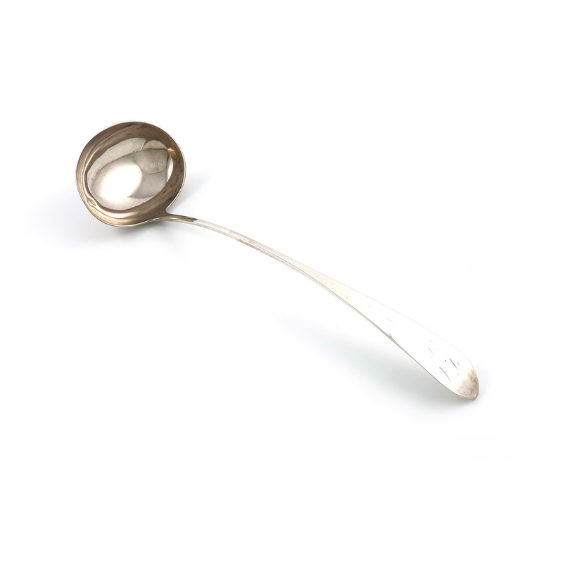A George III Scottish silver Celtic Point pattern soup ladle,