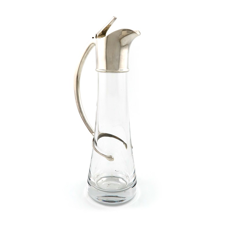 By Martin Pugh, a modern silver-mounted glass claret jug,
