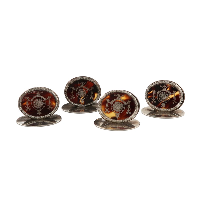 λA set of four Edwardian silver and tortoiseshell menu card holders