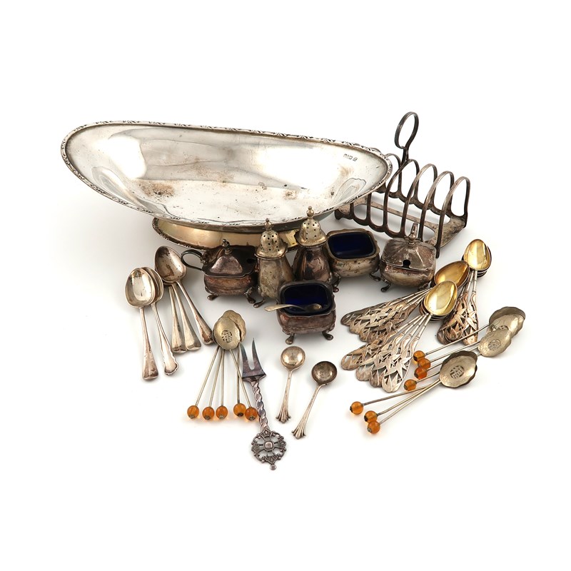 A mixed lot of silver items,
