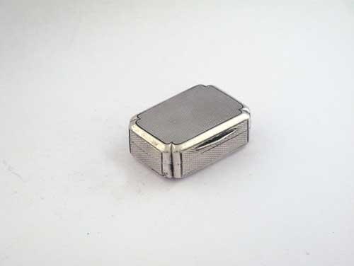 A George III engine turned vinaigrette, oblong with inverted corners, the grille pierced with two oval floral vingettes, by William Edwards, London 1813, 1.45in (3.7cm) long, 0.75oz.