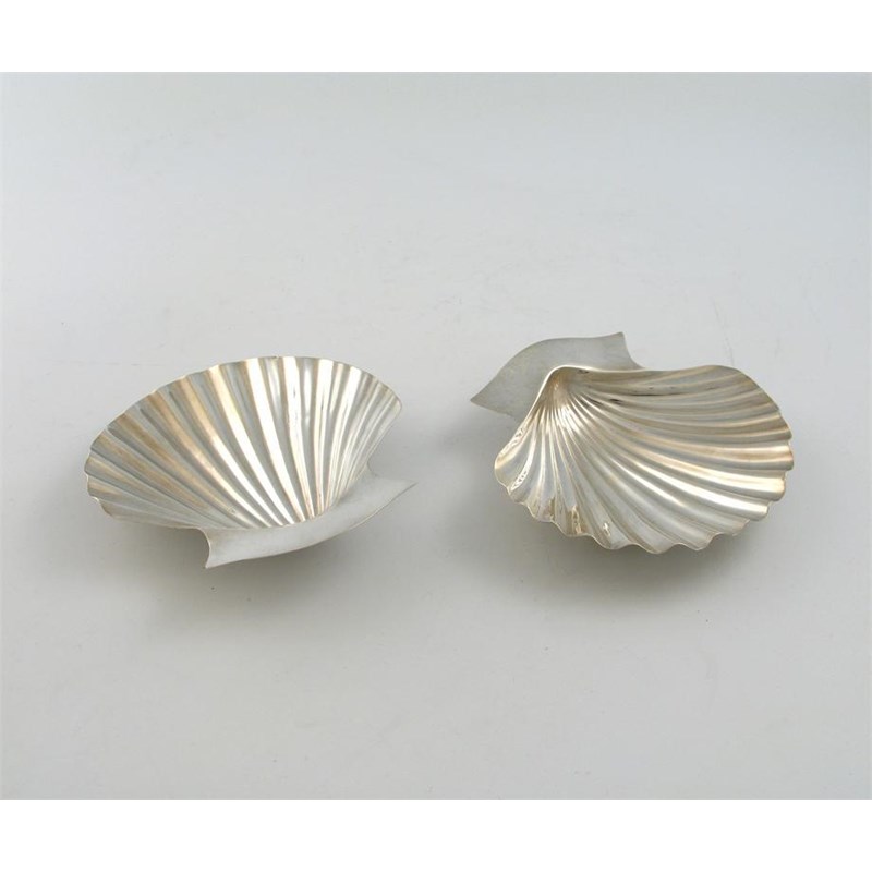 conventional shell form, supported by two winkle feet, length 13cm, approx. weight 6oz. (2)