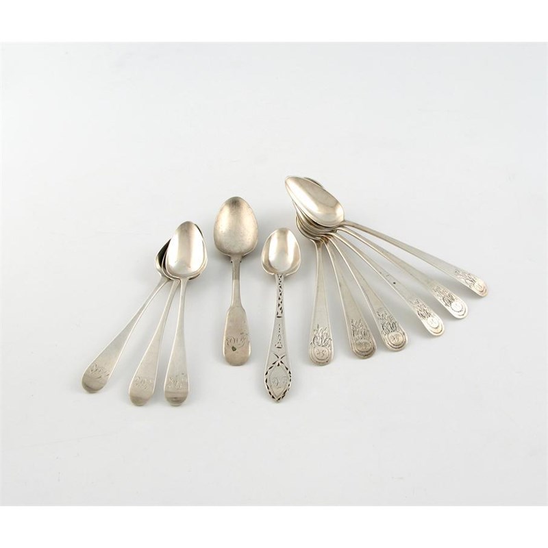 comprising: three Aberdeen teaspoons by James Erskine, plus six tea spoons, and two single tea spoons, approx. weight 5oz. (11)