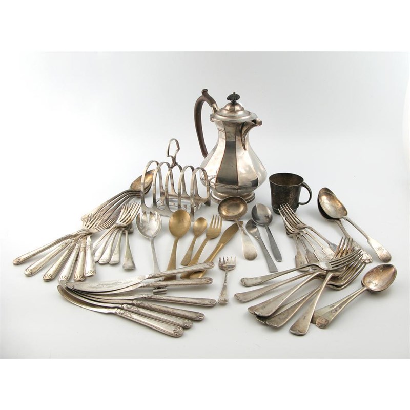 comprising: a hot water pot of panelled form, a toast rack, a mug and a quantity of flatware. (qty)