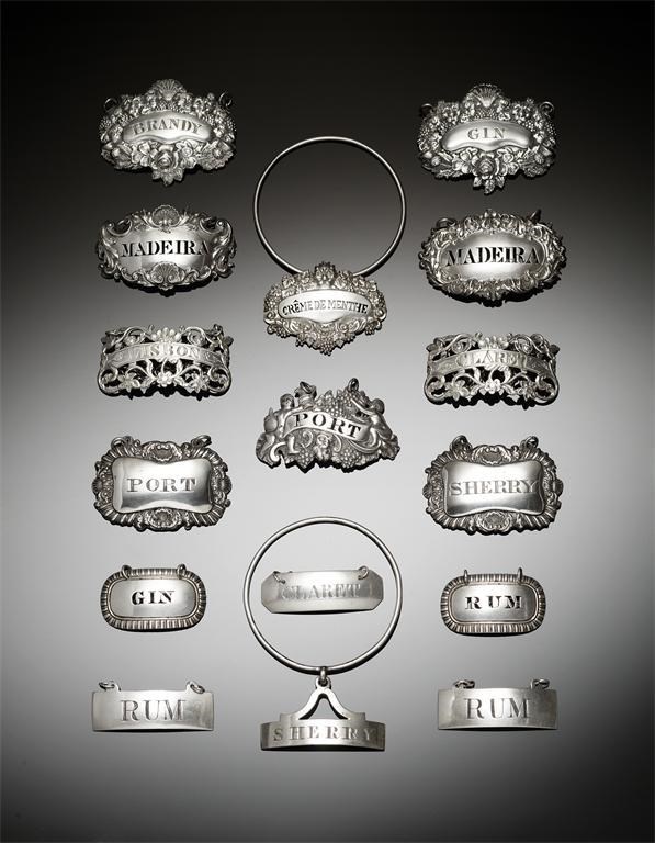 oval form, foliate border, pierced 'MADEIRA', plus A George IV silver wine label, of similar form, London 1822, pierced 'MADEIRA', length 6.3cm and 6cm. (2)