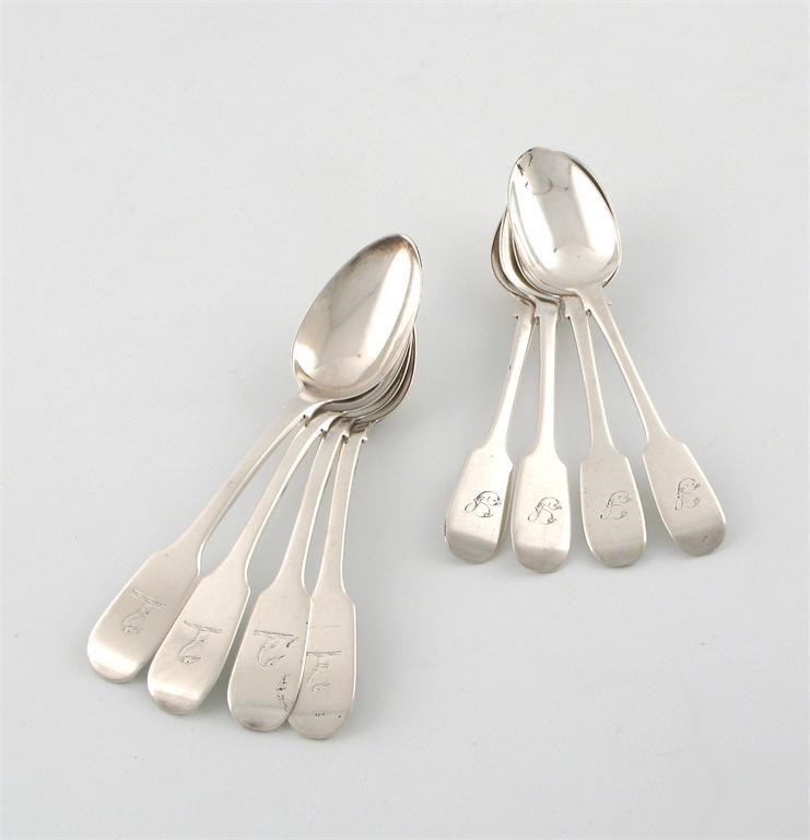 by James Barber and William North, York 1844, plus another set of four by James Barber, York 1852, initialled and crested, approx. weight 6oz. (8)