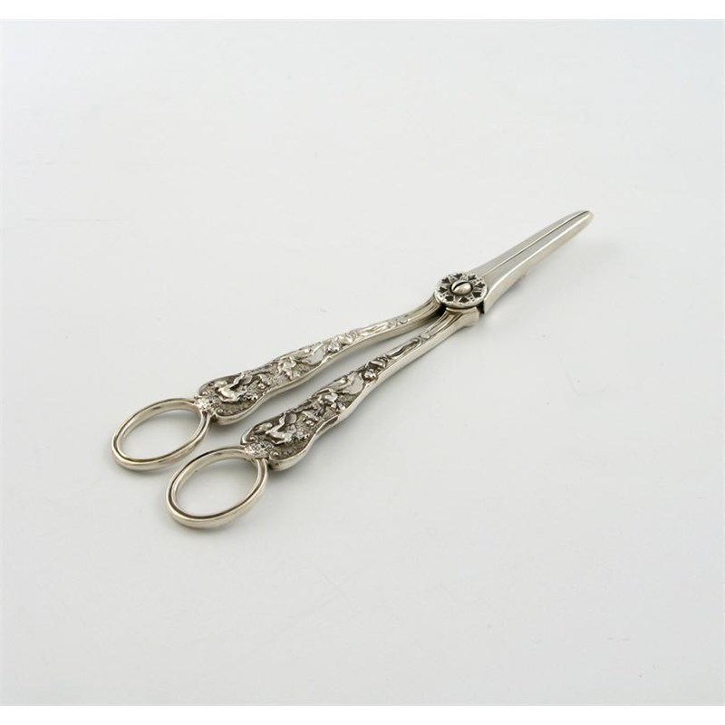 A pair of Victorian silver Bacchanalian pattern grape scissors,