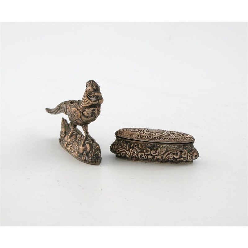 and an Edwardian Birmingham made silver pheasant pin cushion (missing pad),
