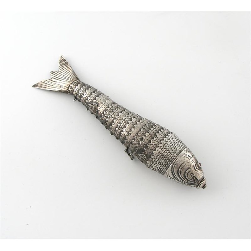conventional form, set with red eyes, the mouth with a screw-off cap, length 17.5cm.