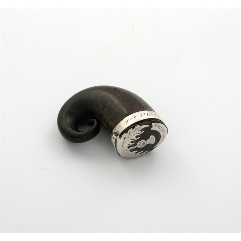 A 19th century Scottish silver mounted ram's horn snuff mull,