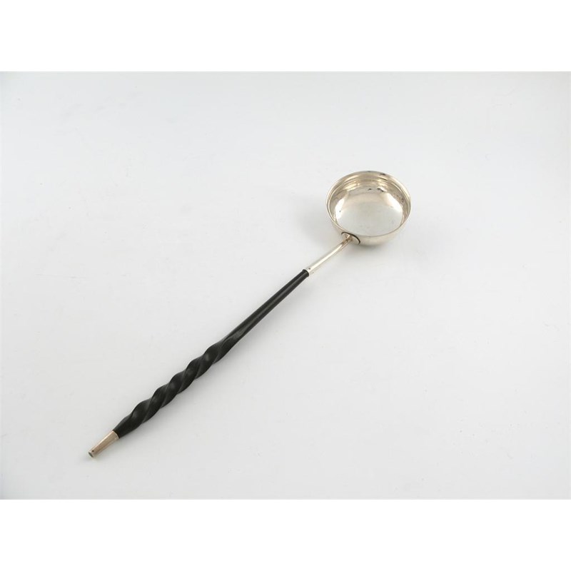 circular bowl, engraved with a crest, motto and monogram, twisted whalebone handle, length 33cm.
