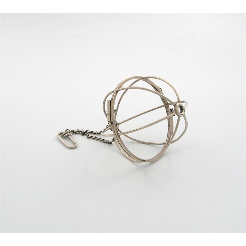 globe form, with a hinged cover and hanging chain, diameter 9.5cm, approx. weight 3oz.
