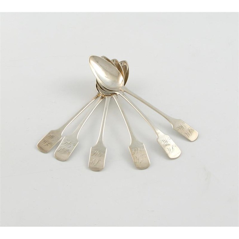 A set of six George III Scottish provincial silver Fiddle pattern teaspoons,