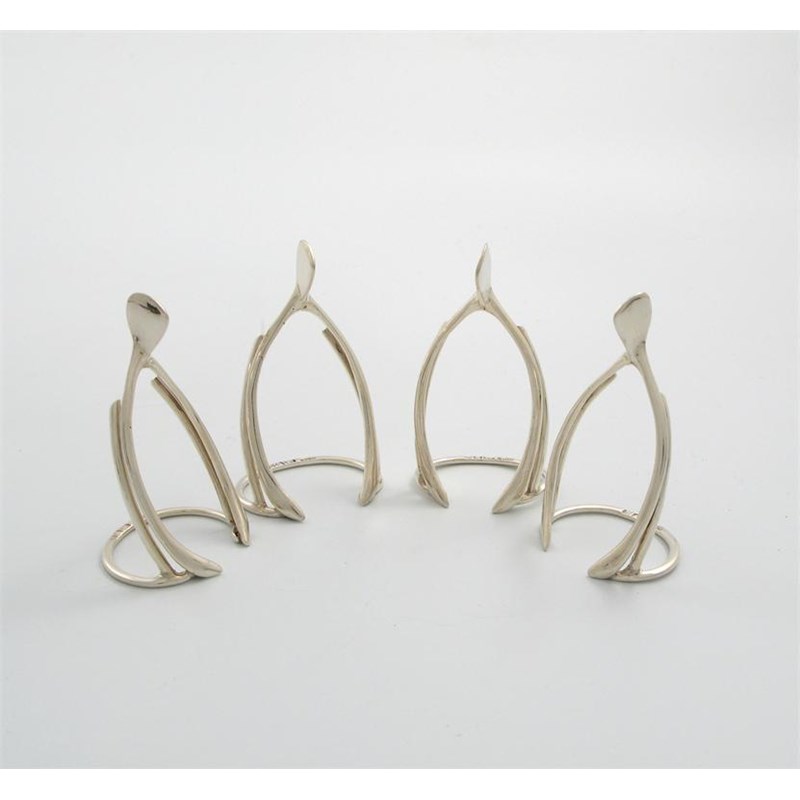 A set of four Edwardian silver novelty wishbone menu card holders