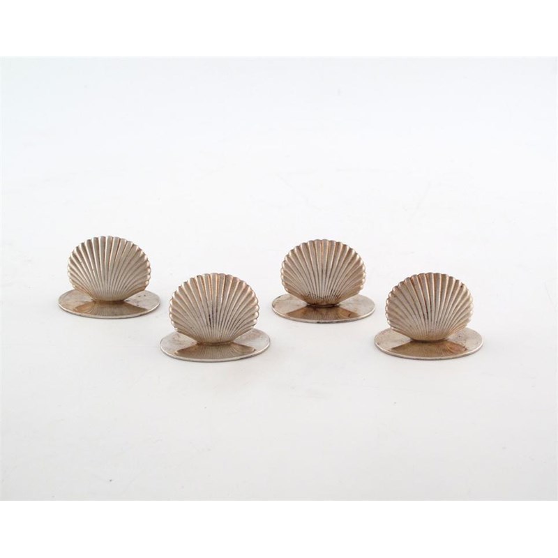 shell form, on circular bases, length 4.5cm, approx. weight 3.7oz. (4)