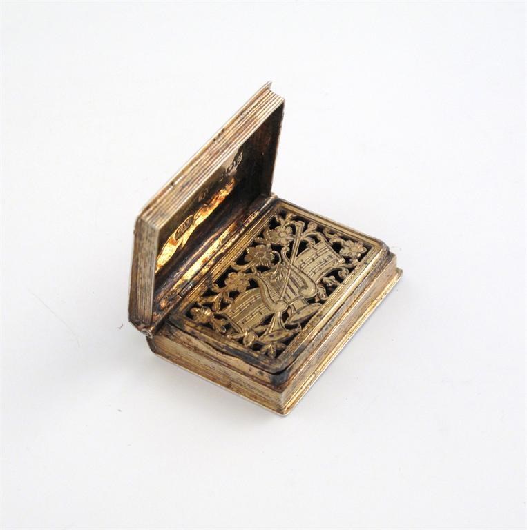 book form, with engine turned decoration, reeded decoration, vacant cartouche, length 3.8cm, approx. weight 1oz.