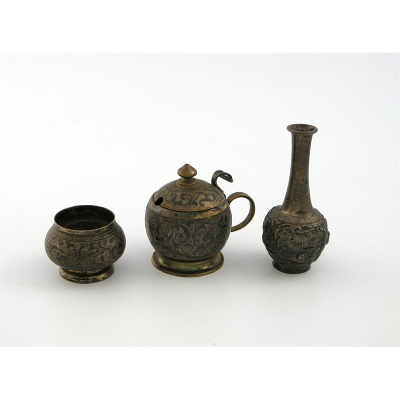 A 19th century Russian silver and niello-work mustard pot and salt cellar