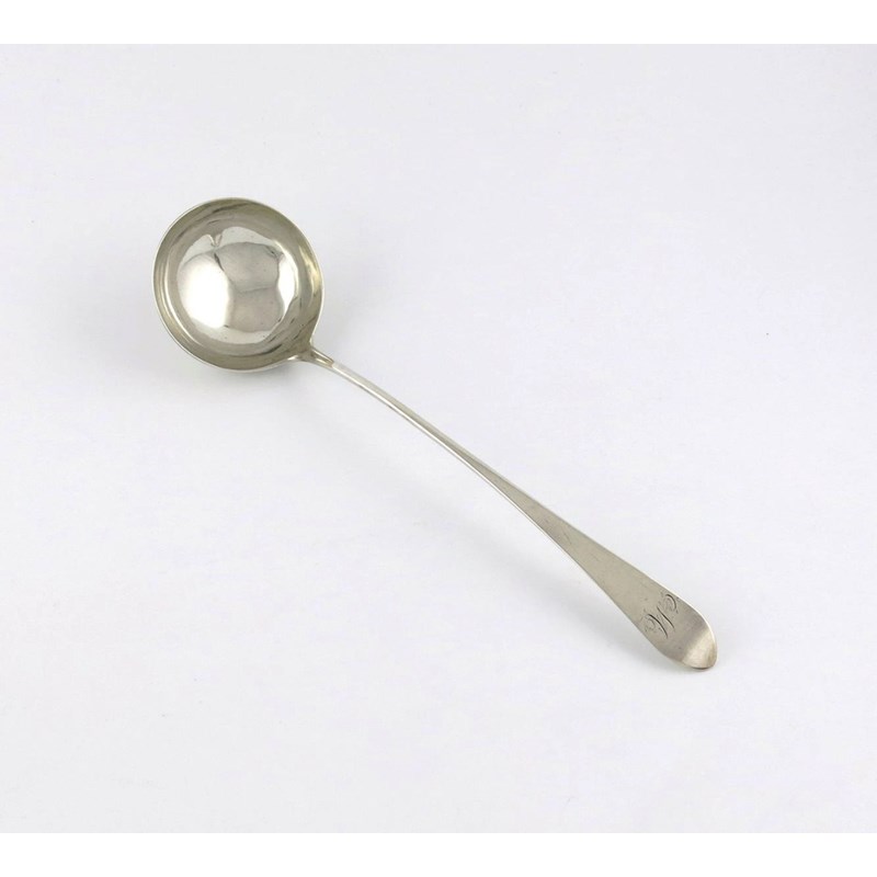 A George III Scottish silver Celtic Point pattern soup ladle,