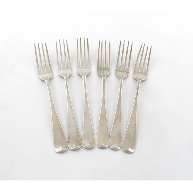 A set of six George III Scottish silver Old English pattern table forks