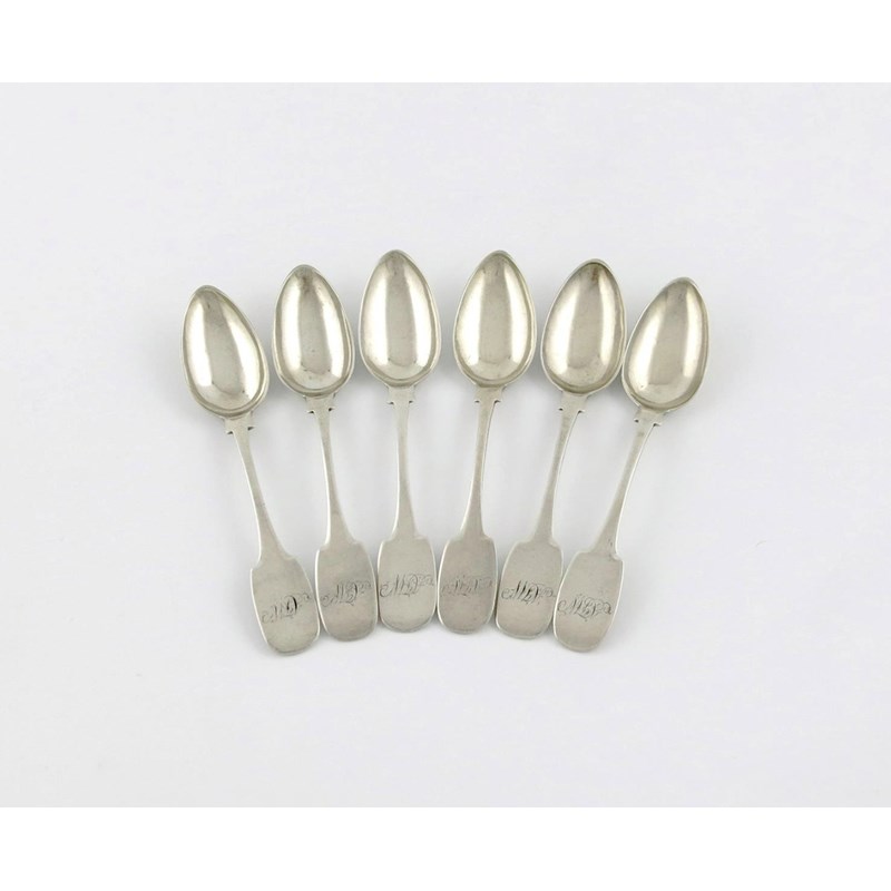 A set of six early 19th century Scottish provincial silver Fiddle pattern teaspoons