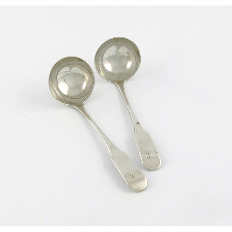 A pair of George III Scottish provincial silver Oar pattern toddy ladles
