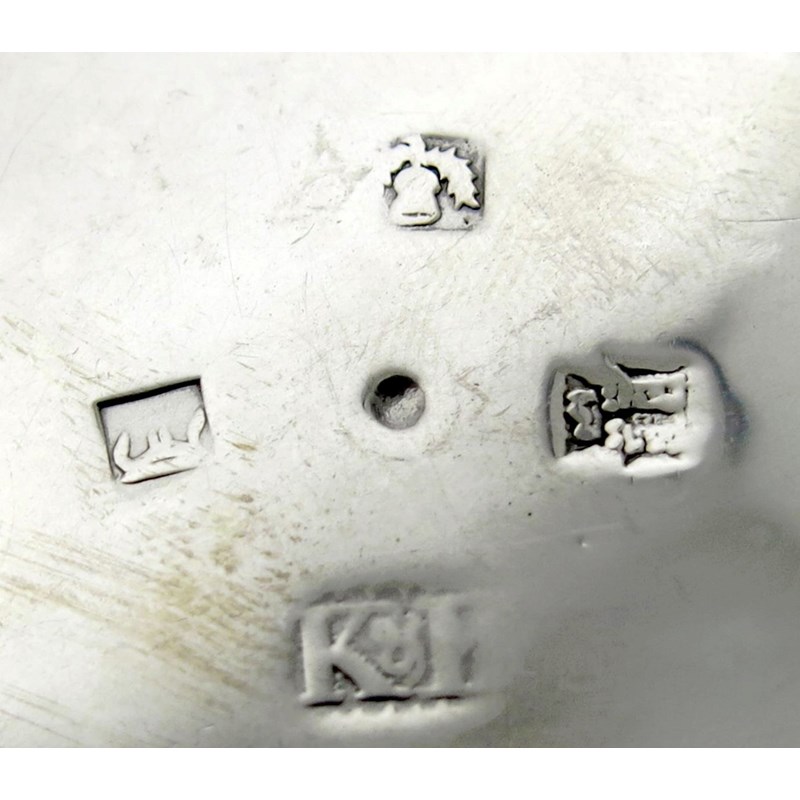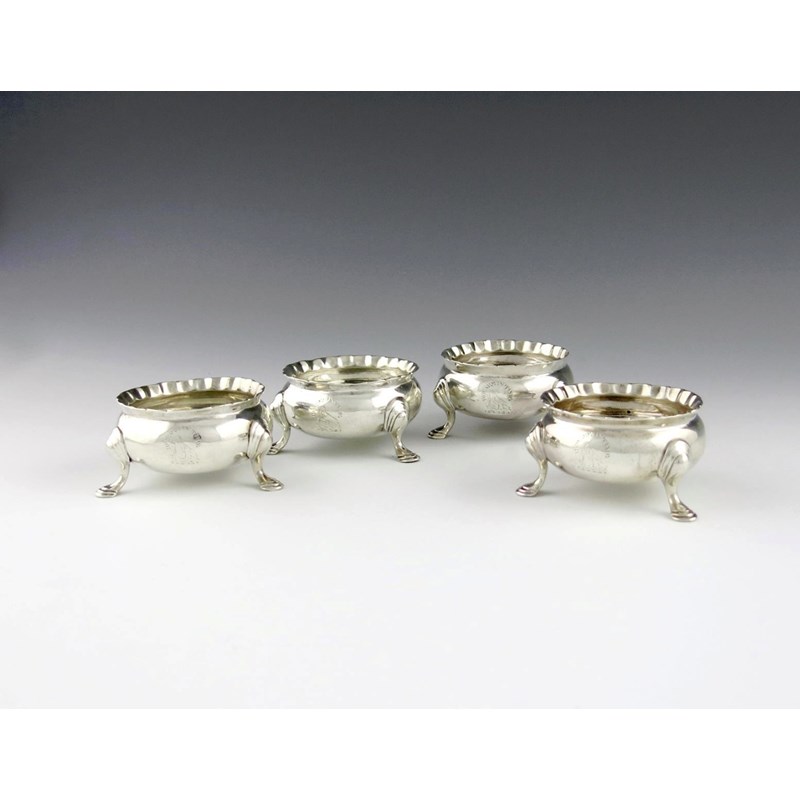 circular form, crimped border, on three hoof feet, diameter 6.3cm, approx. weight 8.5cm. (4)