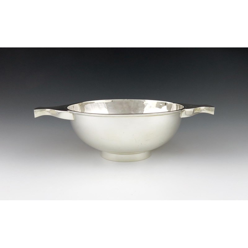 plain circular form, lug handles, on a circular foot, length handle to handle 29.8cm, approx. weight 16.5oz.