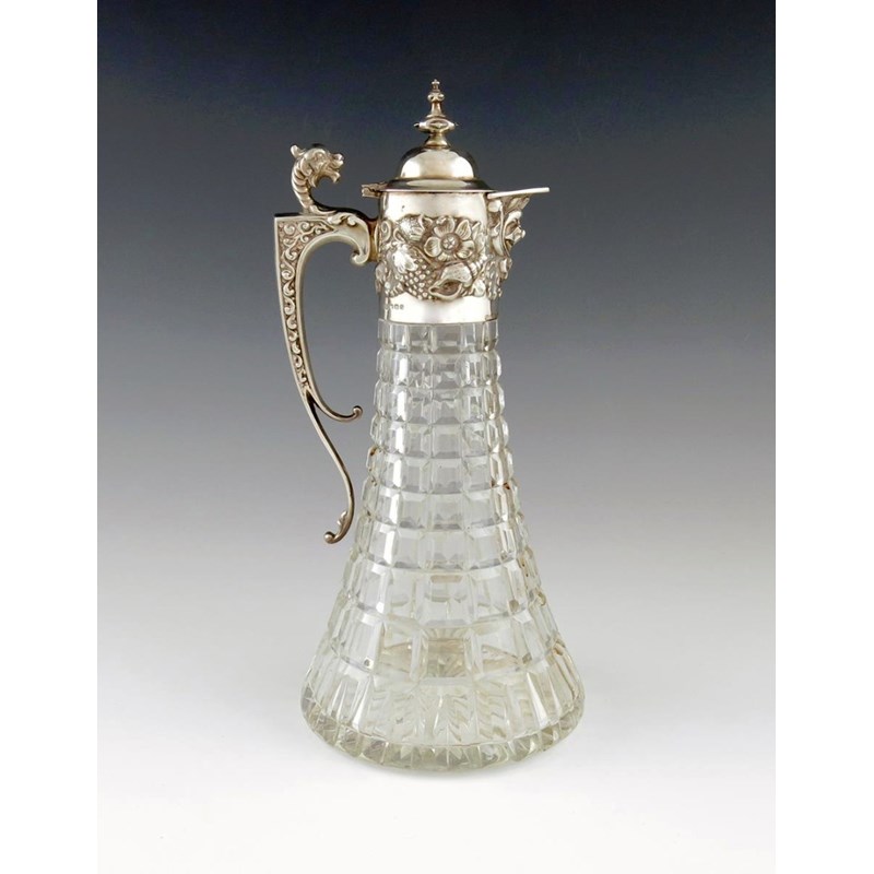 A modern silver mounted glass claret jug