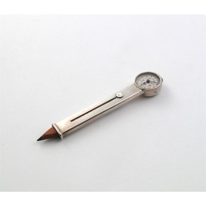 A modern pencil and 'ROTA-Meter' combined, with a slide out pencil insert, makers mark rubbed, London 1913, 3.5in (8.6cm) long.