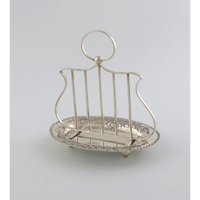 with five dividing bars, on an oval base, embossed with foliate decoration, on ball feet, length 14.9cm, approx. weight 6.4oz.