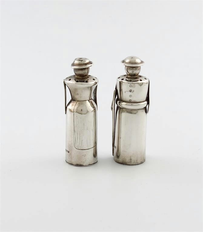 A pair of Victorian novelty silver pepper pots,