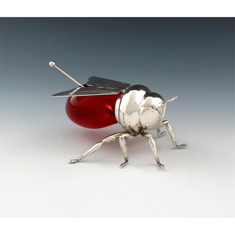 A silver novelty honey bee jam pot