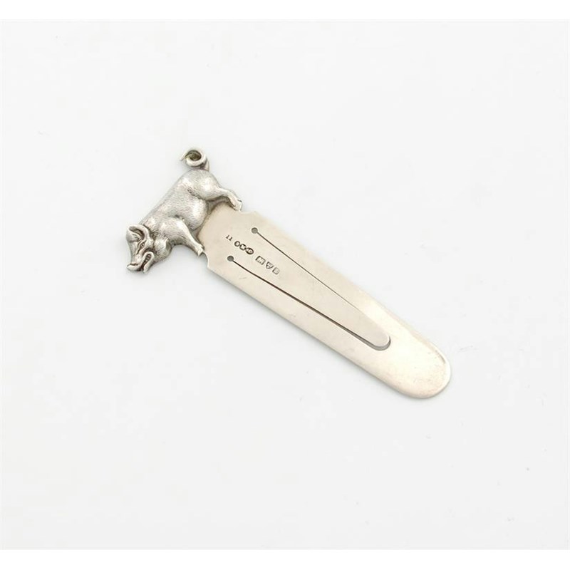 tapering form, with standing pig finial, length 8cm, approx. weight 0.3oz.