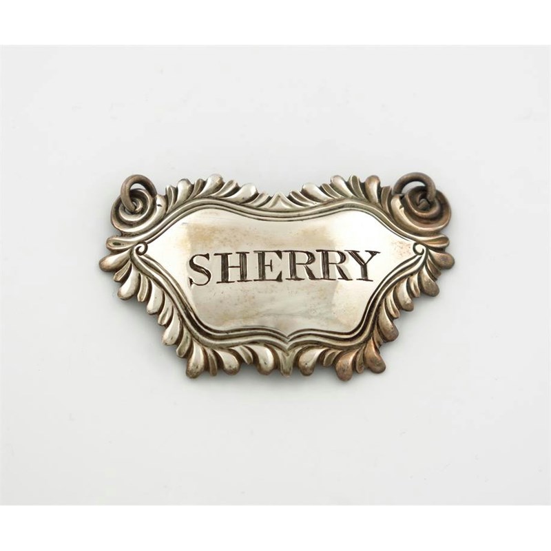 cartouche form, with a scroll and gadroon border, incised 'SHERRY', length 5cm.