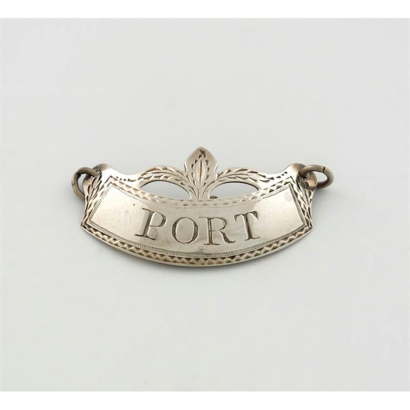 banner form, pierced pediment, bright-cut decoration, incised 'PORT', length 4.7cm, approx. weight 0.2oz.