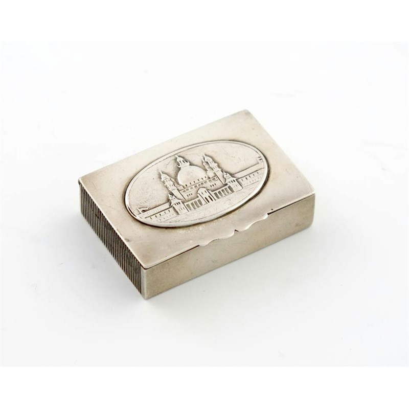 Scottish interest, an Edwardian silver commemorative vesta box, made for the 1901 Exhibition at Kelvin Grove,