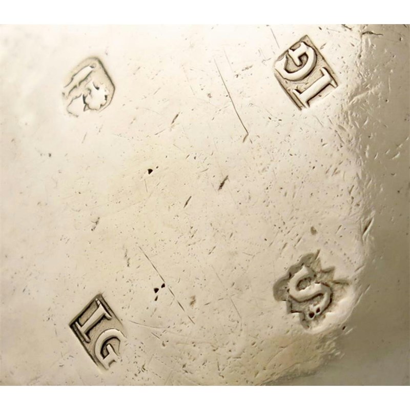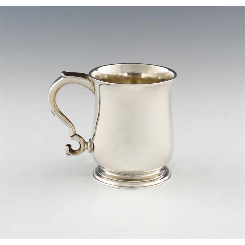 baluster form, scroll handle, the front with engraved initials, on a circular foot, height 8.5cm, approx. weight 5.8oz.