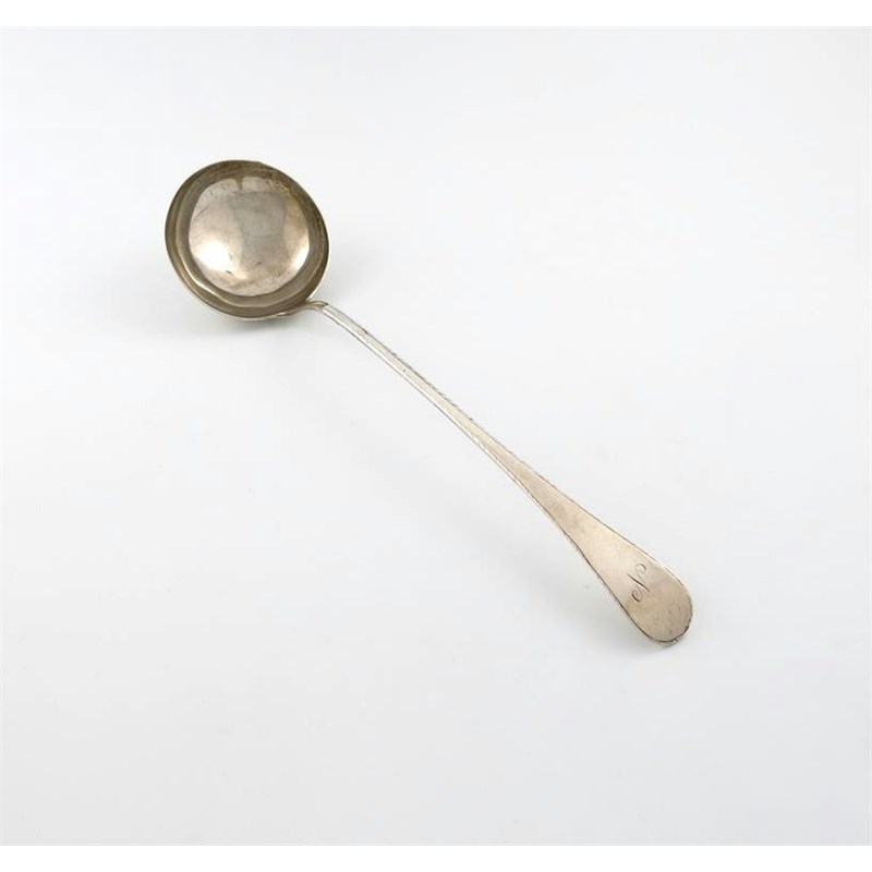 A rare George III Scottish provincial silver Feather-edge pattern soup ladle