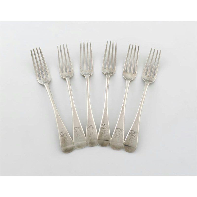 A set of six George III Scottish provincial silver Old English pattern table forks
