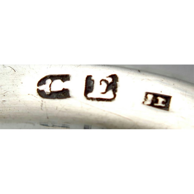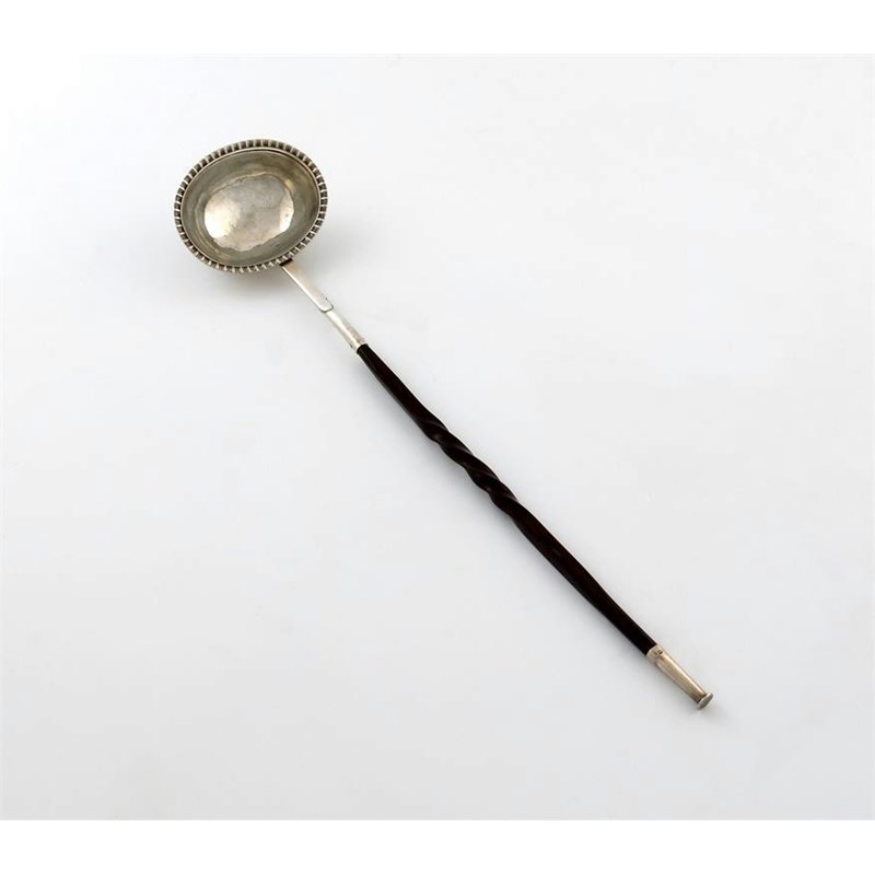 oval bowl, gadroon border, twisted whale-bone handle, the reverse of the bowl with initials, length 34.5cm.
