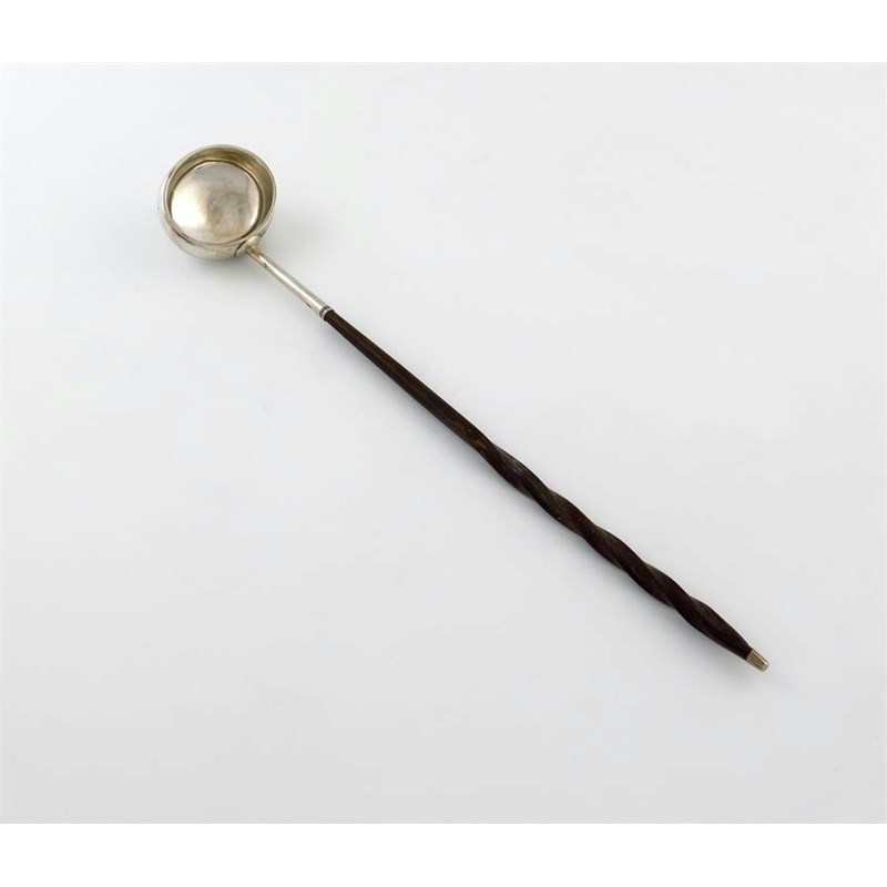 oval bowl, twisted whale-bone handle, the reverse of the bowl with initials, length 36cm.