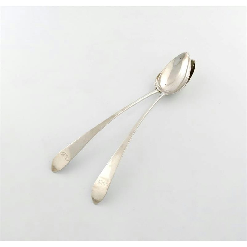 A pair of early 19th century Scottish provincial silver Celtic Point pattern basting spoons,