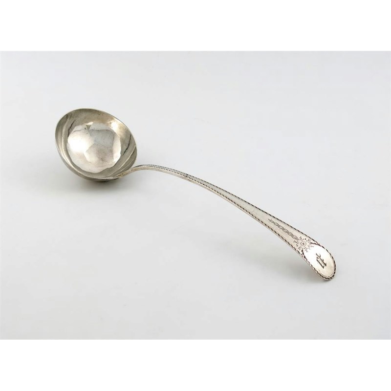 A George III silver Bright-cut pattern soup ladle