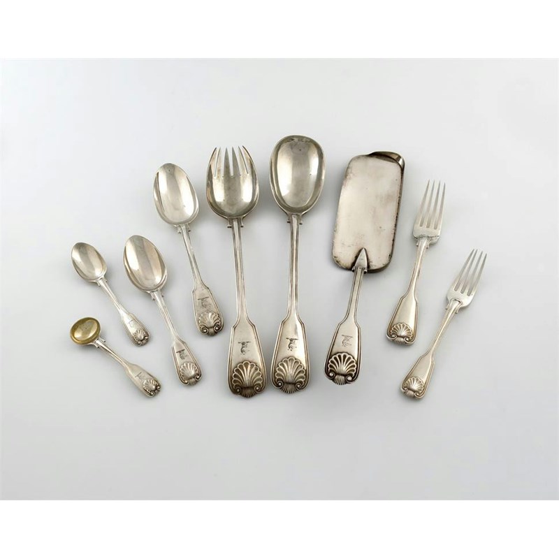 A part canteen of Victorian silver Fiddle, Thread and Shell pattern flatware,