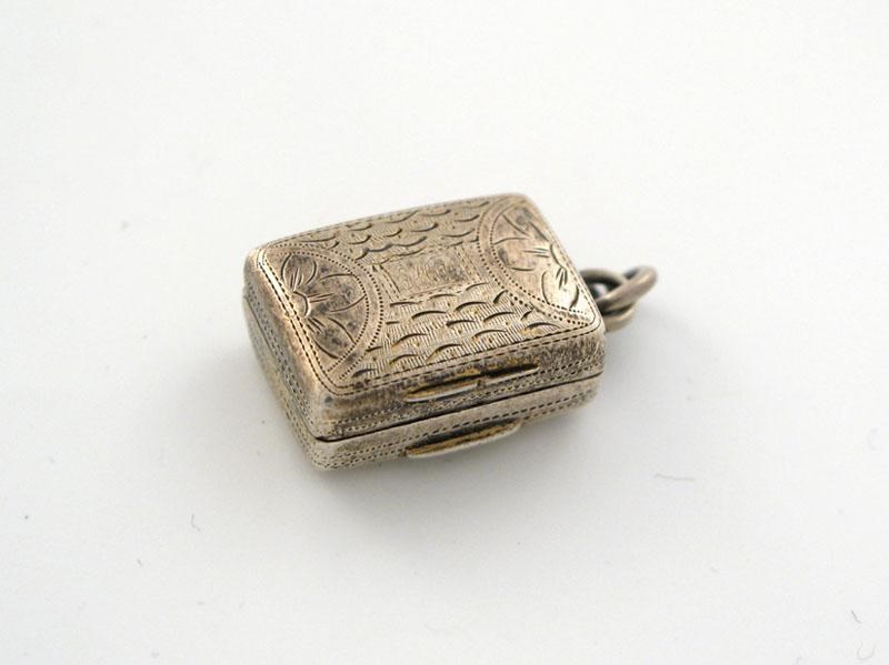 A William IV silver vinaigrette, rectangular form, with engraved foliate decoration, by William Phillips, Birmingham 1831, length 1.8cm.