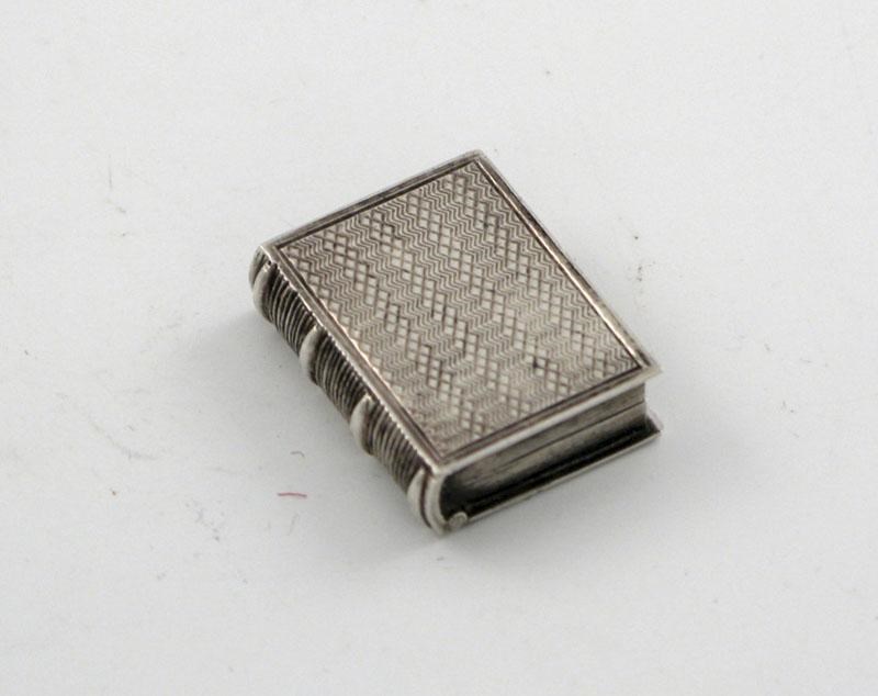 A William IV vinaigrette, in the form of a book, gilt interior, pierced grille, by Taylor & Perry, Birmingham, 1835.