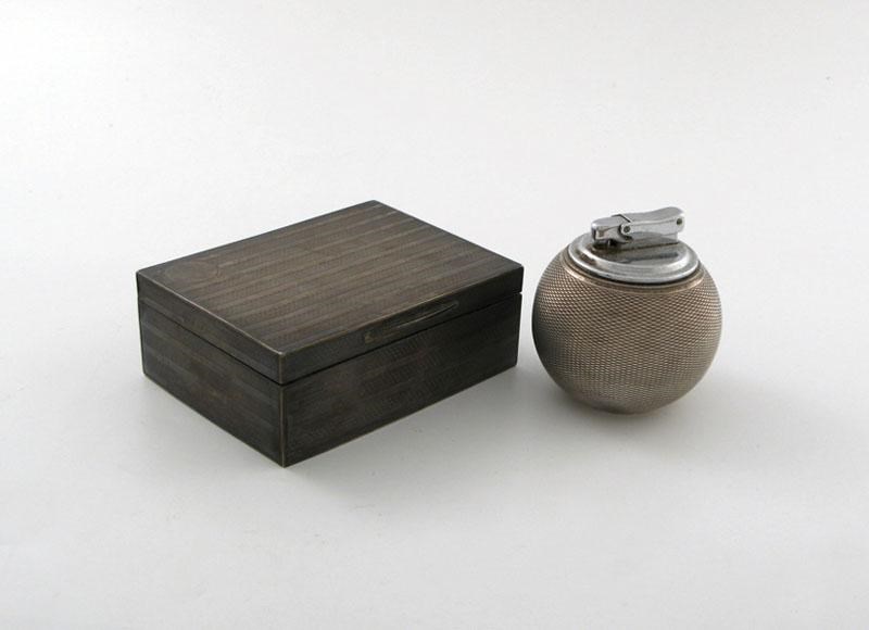 Three modern cigar boxes, and an engine turned lighter, mixed makers and dates. (4).
