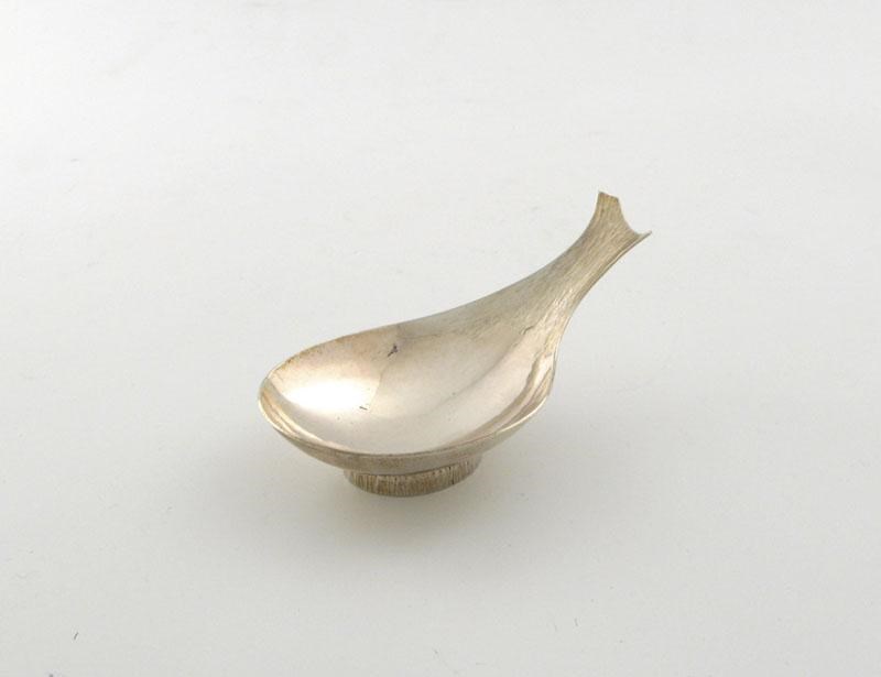 By Anthony Hawksley: a modern silver dish, of elongated oval form, spot hammered and textured decoration, on a circular foot, London 1988, also signed to underside Anthony Hawksley, length 13cm., approx. weight 2oz.