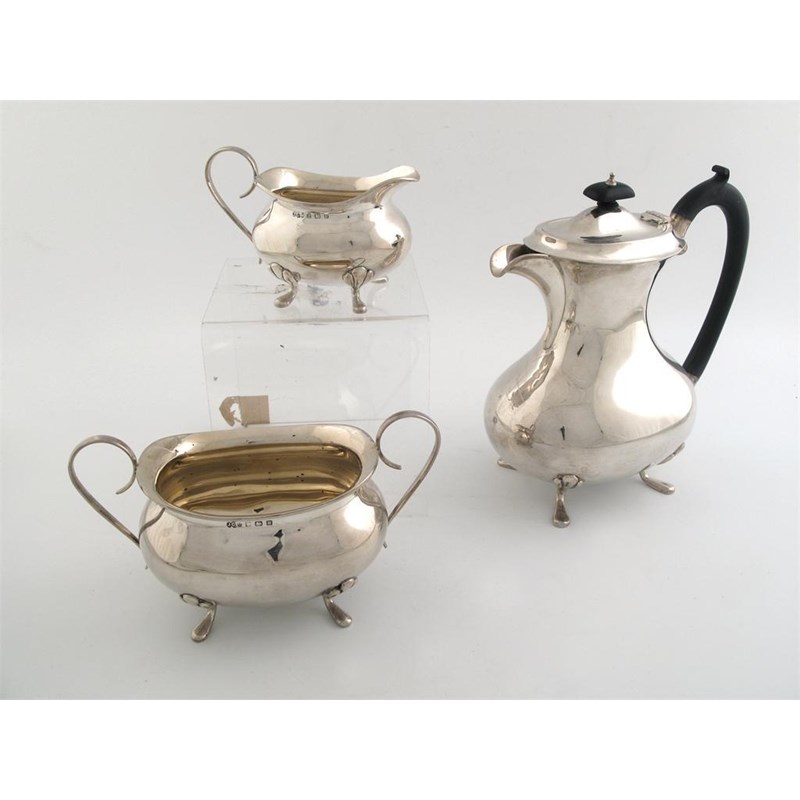 A George V five piece tea service, plain, of bulbous oval form, on pad feet, the kettle with stand and spirit lamp, by J. Gloster Ltd, Birmingham 1921, 108oz all in (5)